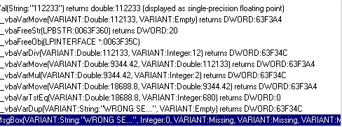 4th : you see : __vbavarmul(VARIANT:9344.42,VARIANT:2) : this multiple the result from the div with 2